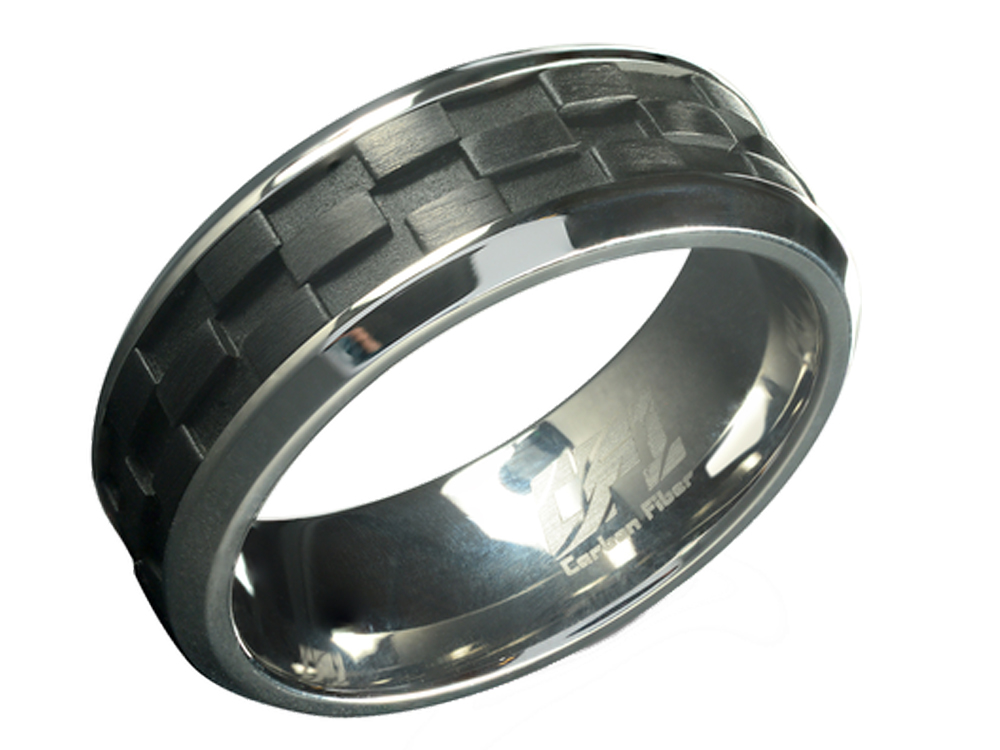 Stainless Steel with Carbon Fiber Inlay, Size 9.5, Available 7-13, Full & Half Sizes,