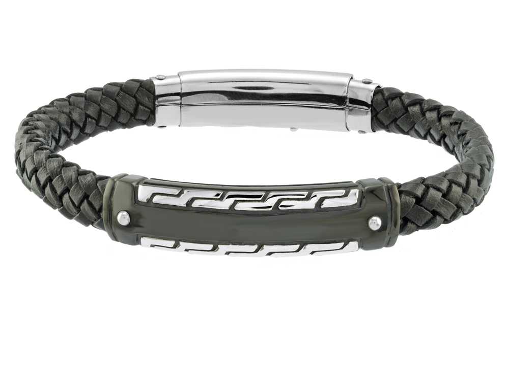 Mens Leather & Stainless Steel Bracelet