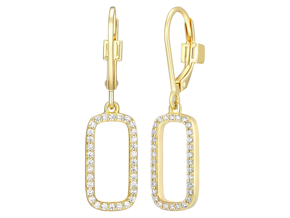 Cubic Zirconia Open Halo, Drop Style with Lever Backings, Gold Plated on Sterling Silver