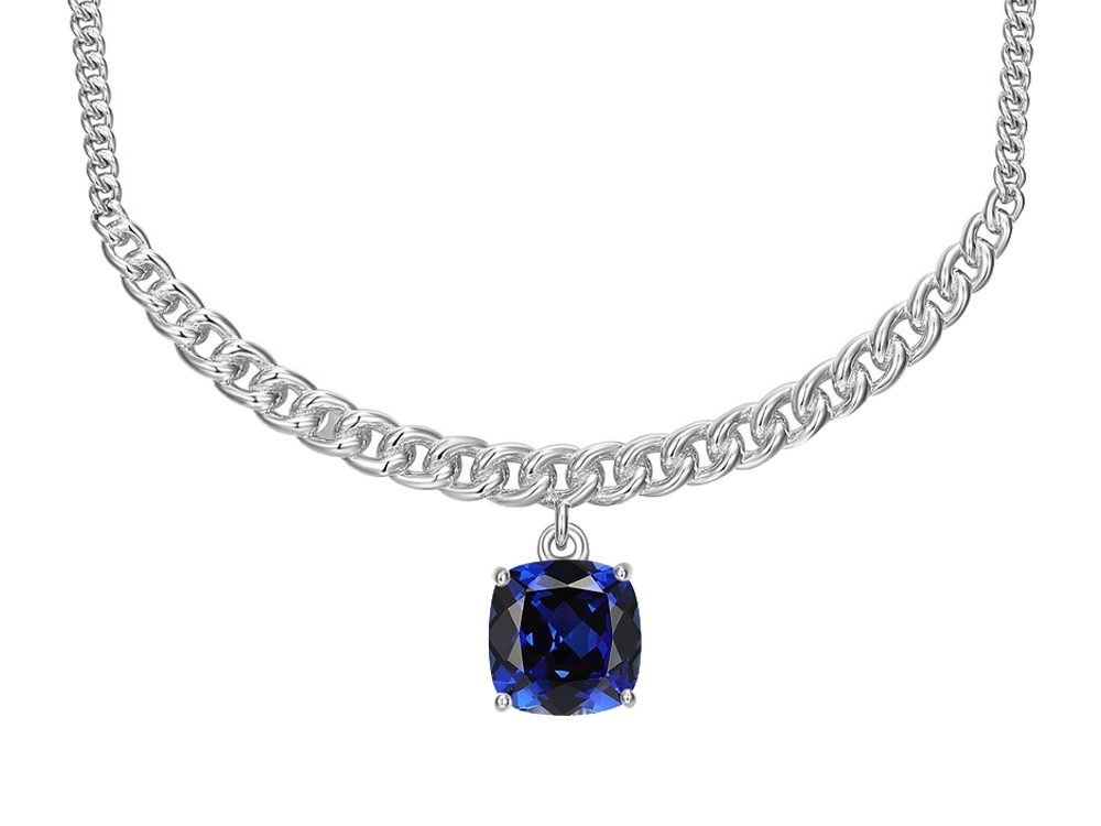 Created Blue Sapphire, 17" Chain + 3" Extender, Rhodium Plated on Sterling Silver