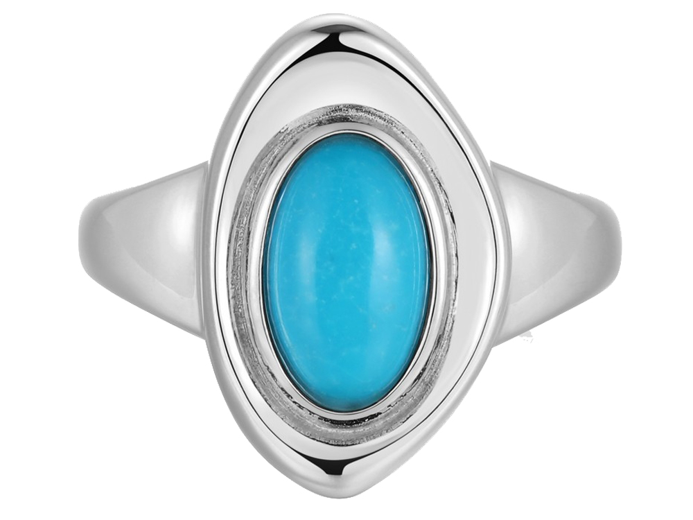 Genuine Turquoise, Size 8, Sizes 6, 7 & 9 Also Available, Rhodium Plated on Sterling Silver