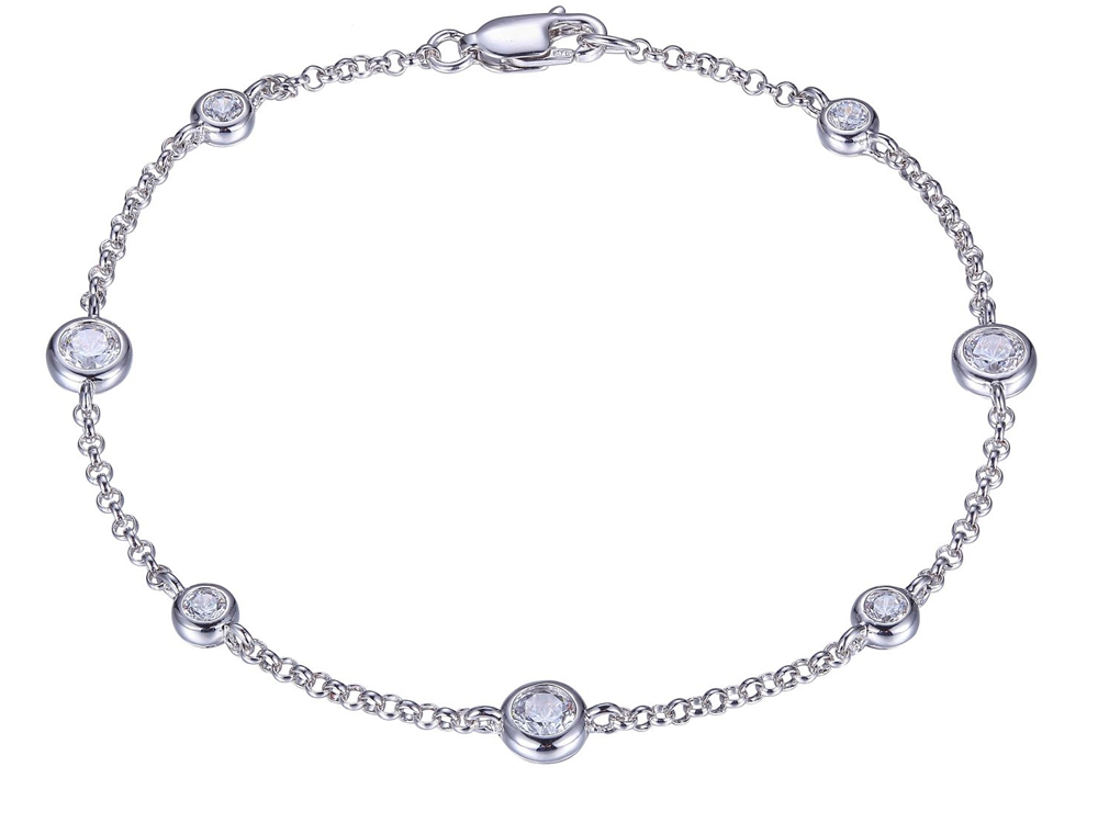 "Diamondlite" Cubic Zirconia, 7.5", Rhodium Plated on Sterling Silver