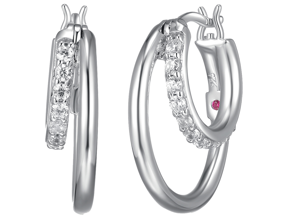 Cubic Zirconia Acccents, Double Layer, Rhodium Plated on Sterling Silver