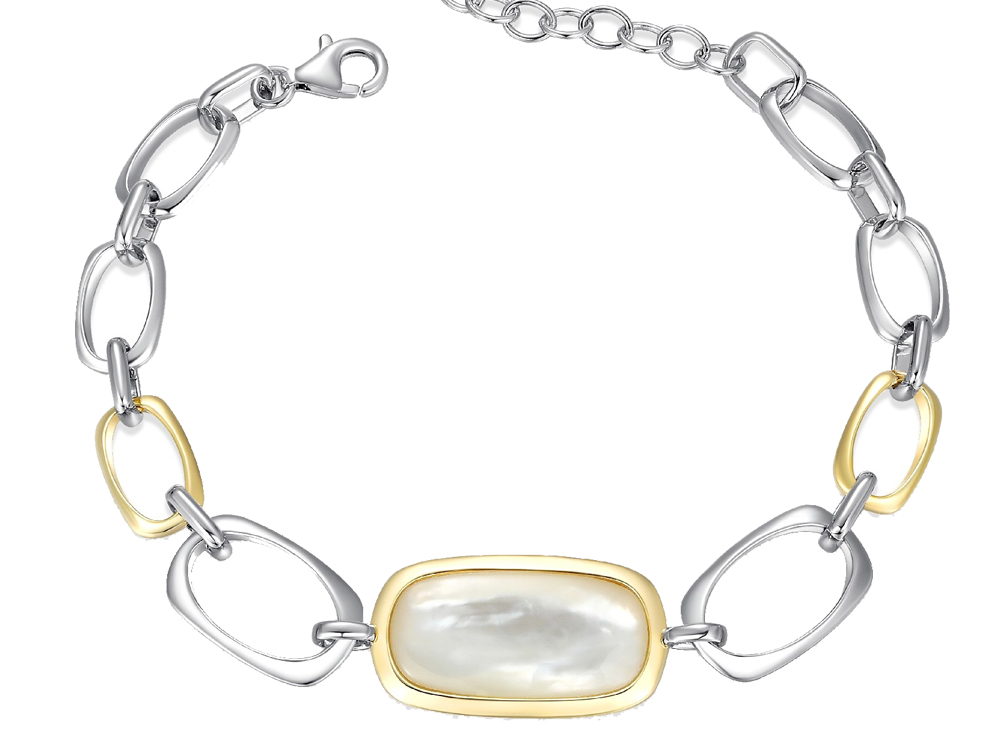 Genuine Mother of Pearl , 6.5" + 1" Extender, Gold & Rhodium Plated on Sterling Silver