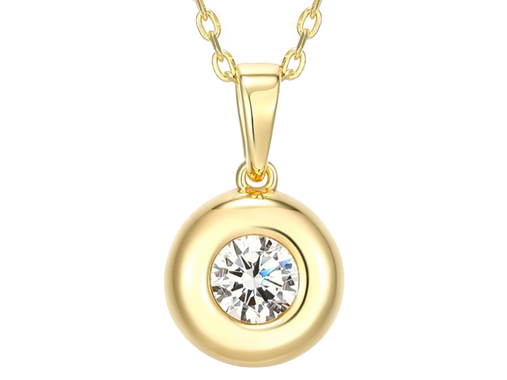 "Diamondlite" Cubic Zirconia in a Puffy Bezel Setting, 17" +3" Extender, 18k Gold Plated on Sterling Silver