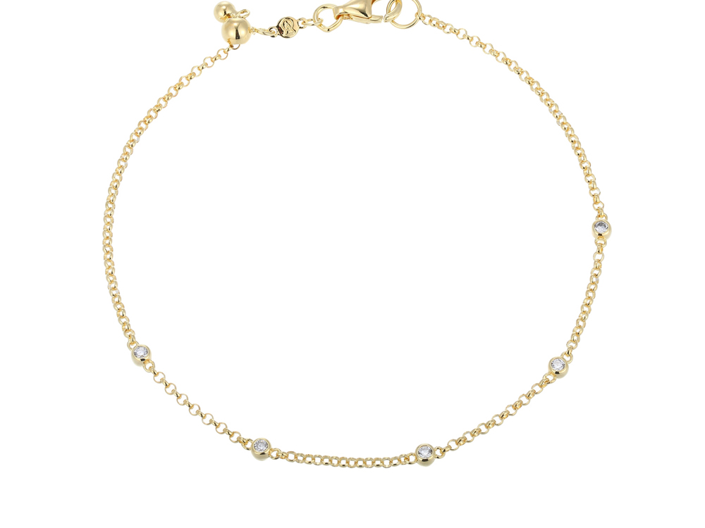 Lab Grown Diamonds, 7.75" Long Adjustable, Gold Plated on Sterling Silver