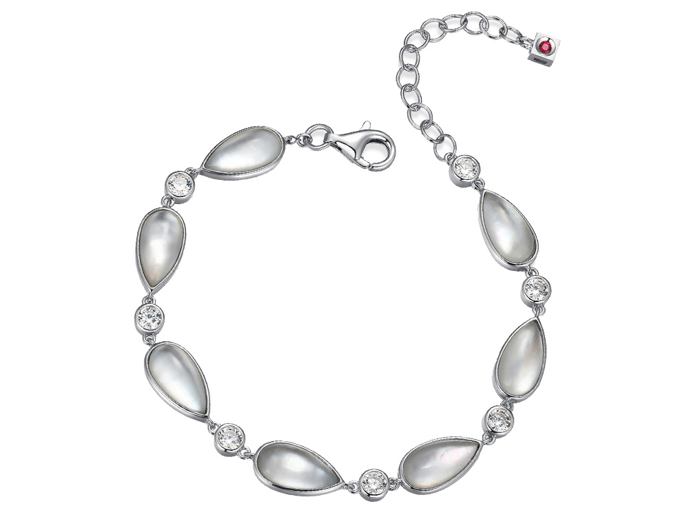 Mother of Pearl Doublet, Cubic Zirconia Accents, 6.5+1.5" Extender, Rhodium Plated on Sterling Silver
