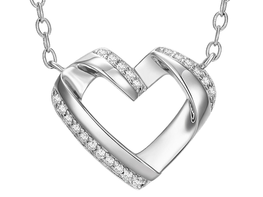 Cubic Zirconia Accents, 17" Plus 2" Extender, Sterling Silver/Rhodium Plated