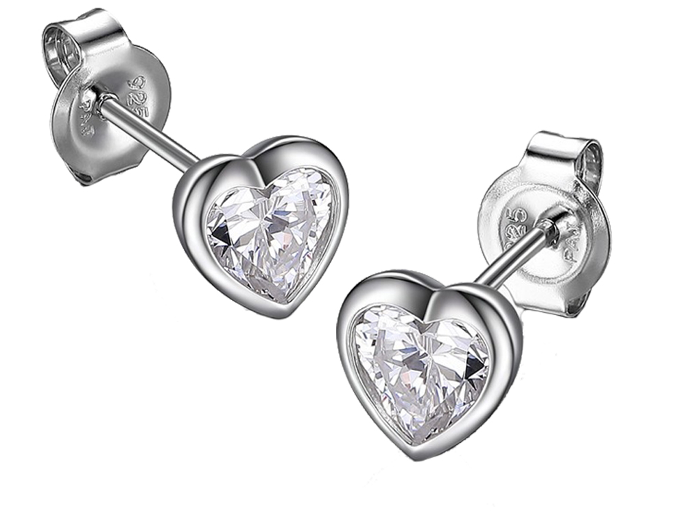 "Diamondlite" Cubic Zirconia Hearts, Post & Butterfly Backings, Rhodium Plated on Sterling Silver.