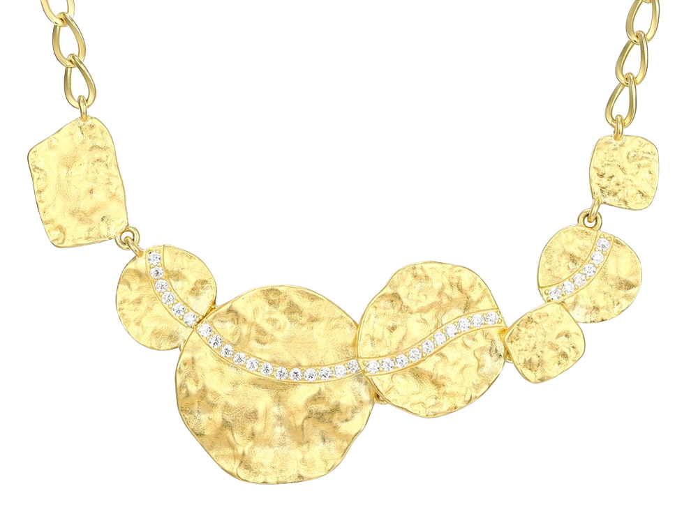 Matt Finish, Multi Shape & Size Discs, Cubic Accents, 17" + 3" Extender, 18K Gold Plate on Sterling Silver