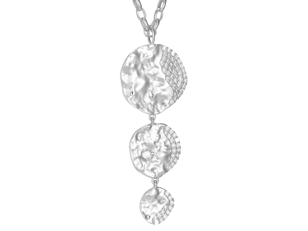 High Polish Finish, Multi Shape & Size Discs, Cubic Zirconia Accents, 17" + 3" Extender, Rhodium Plated on Sterling Silver