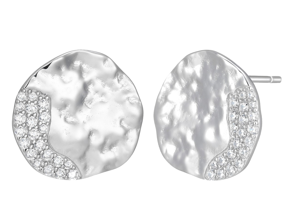 High Polish Finish Disc, Cubic Zirconia Accents, Post & Butterfly Backings, Rhodium Plated on Sterling Silver