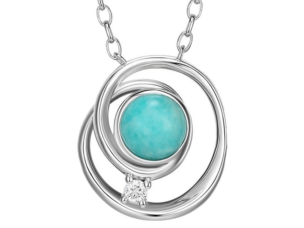 Genuine Amazonite, Moissanite Accent, 17" + 3" Extender, Rhodium Plated on Sterling Silver