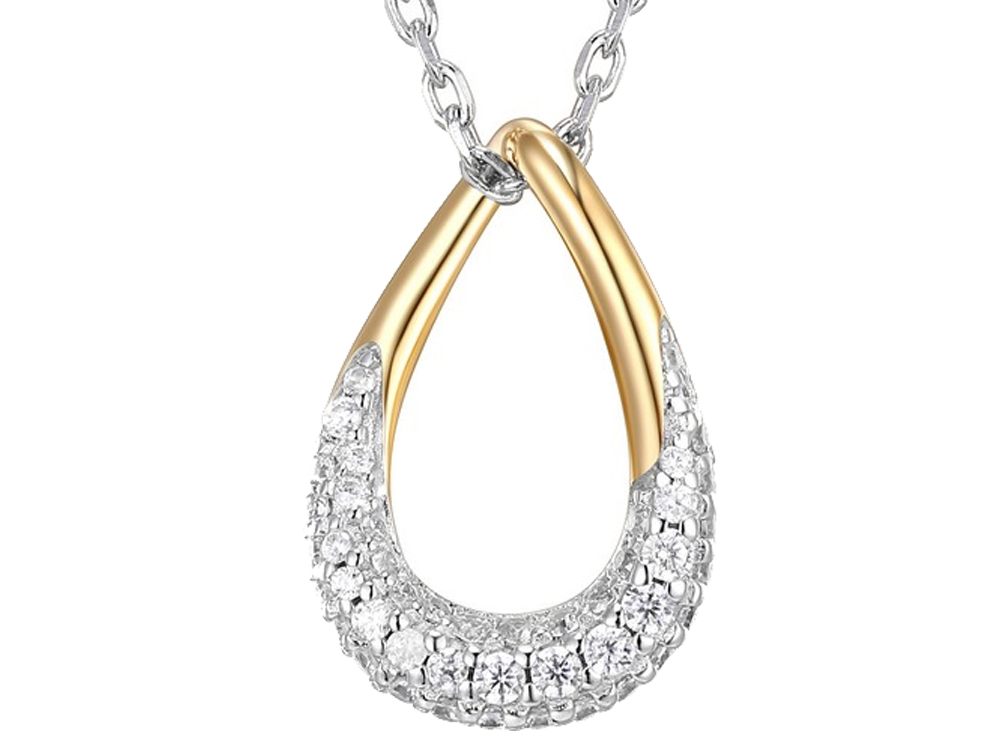 2-Tone Pear Shape, Cubic Zirconia Accents, 16" + 2" Extender, Gold & Rhodium Plated on Sterling Silver