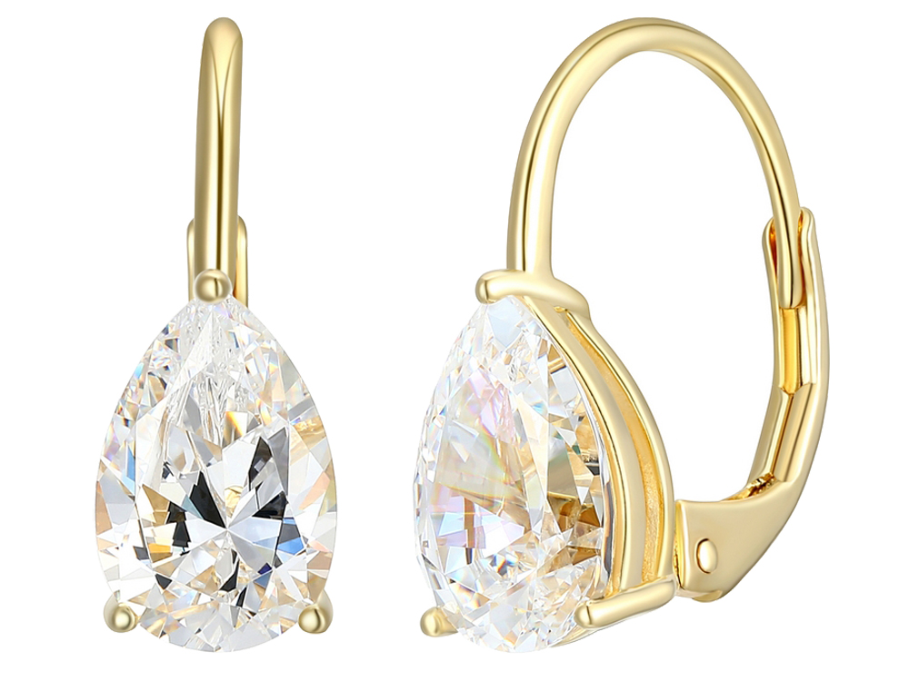 "Diamondlite" 9x6mm Cubic Zirconia, Lever Backings, 18k Gold Plated on Sterling Silver