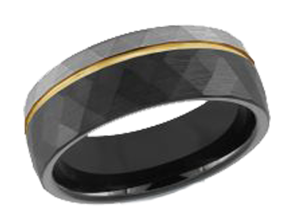 Mens, 8mm Wide, Grey & Black Tungsten, Size 11.5, Available 6-15, Full & Half Sizes, Made in Canada