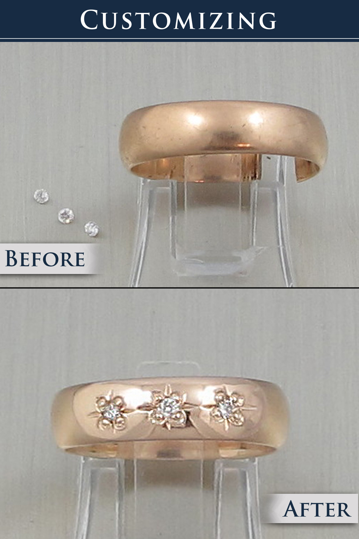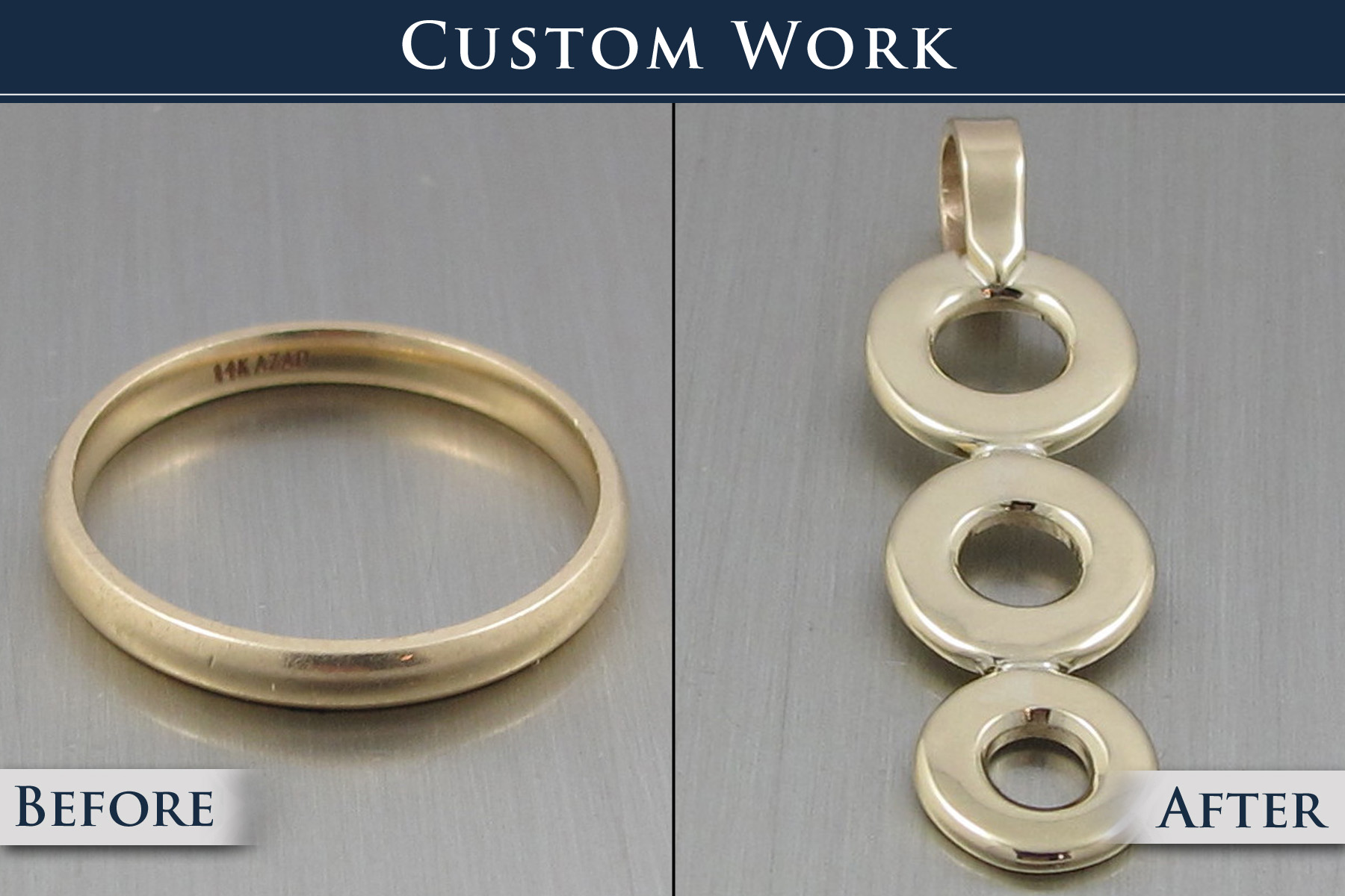 - We can restyle your existing rings and jewellery by adding diamonds and gemstones, by reshaping it to be more petite or by adding gold to make it bolder. We can convert your pendant into a ring or your ring into a brooch. The possibilities are endless.